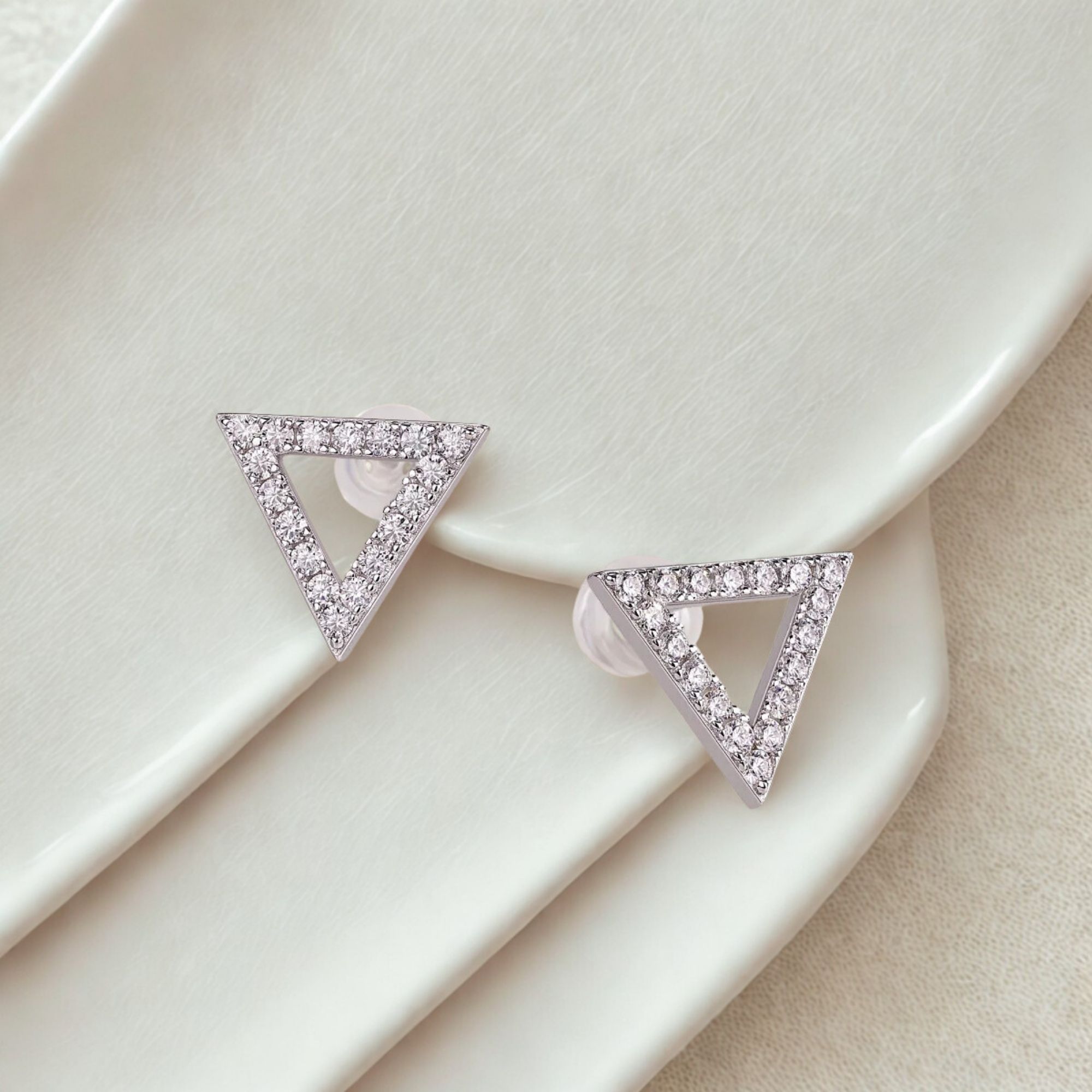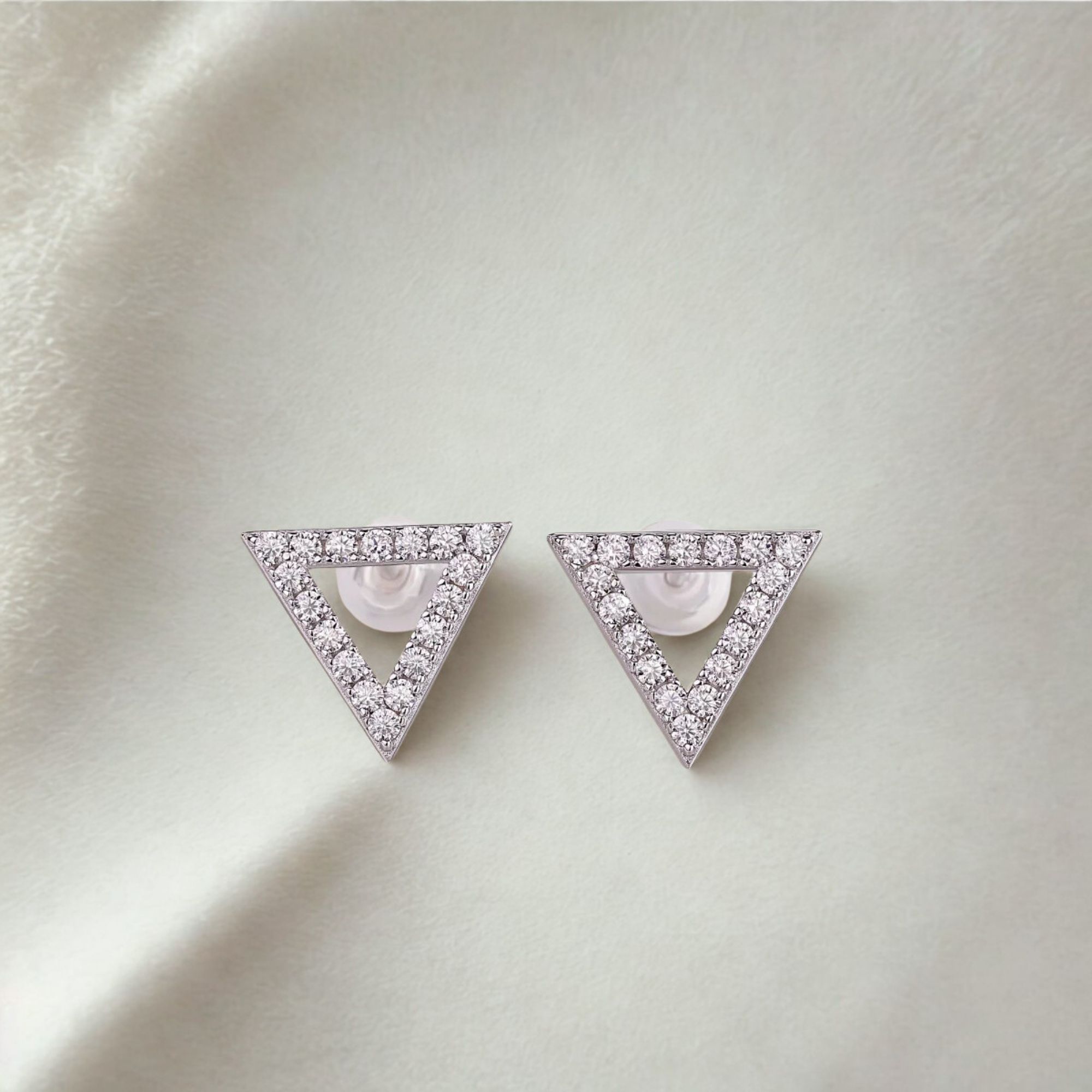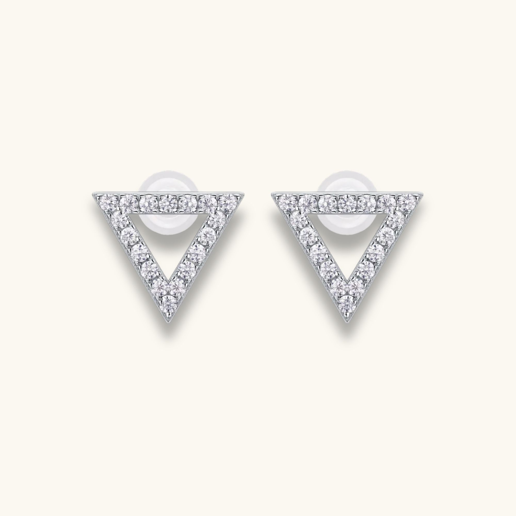 Geometry and grace entwined. Triangle silhouettes, edged in moissanite and silver, create a luminous pause in time—a bold statement for those who balance structure with soul.
