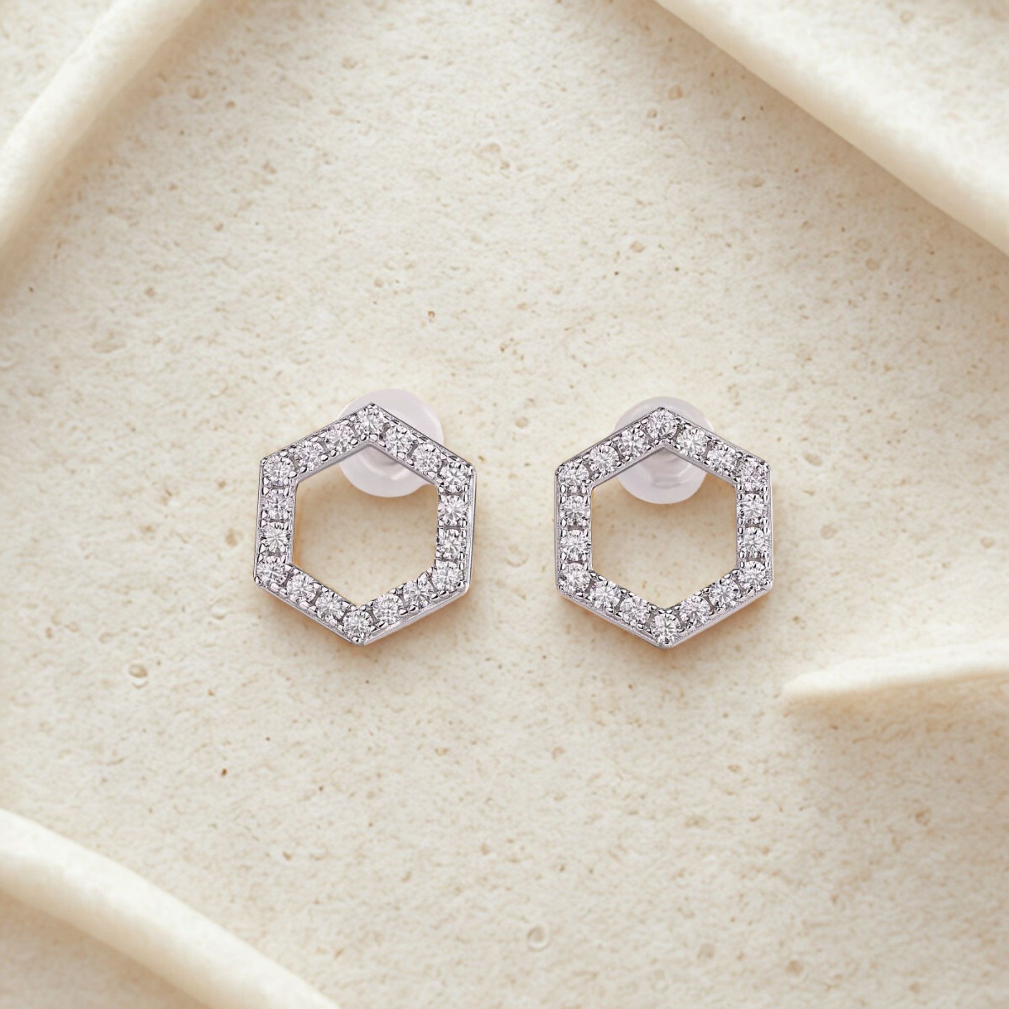 Silver arcs cradle moissanite, shaping a promise for the future. Minimal yet radiant, these earrings are a gentle arc of hope—crafted for those who believe in light’s enduring embrace.