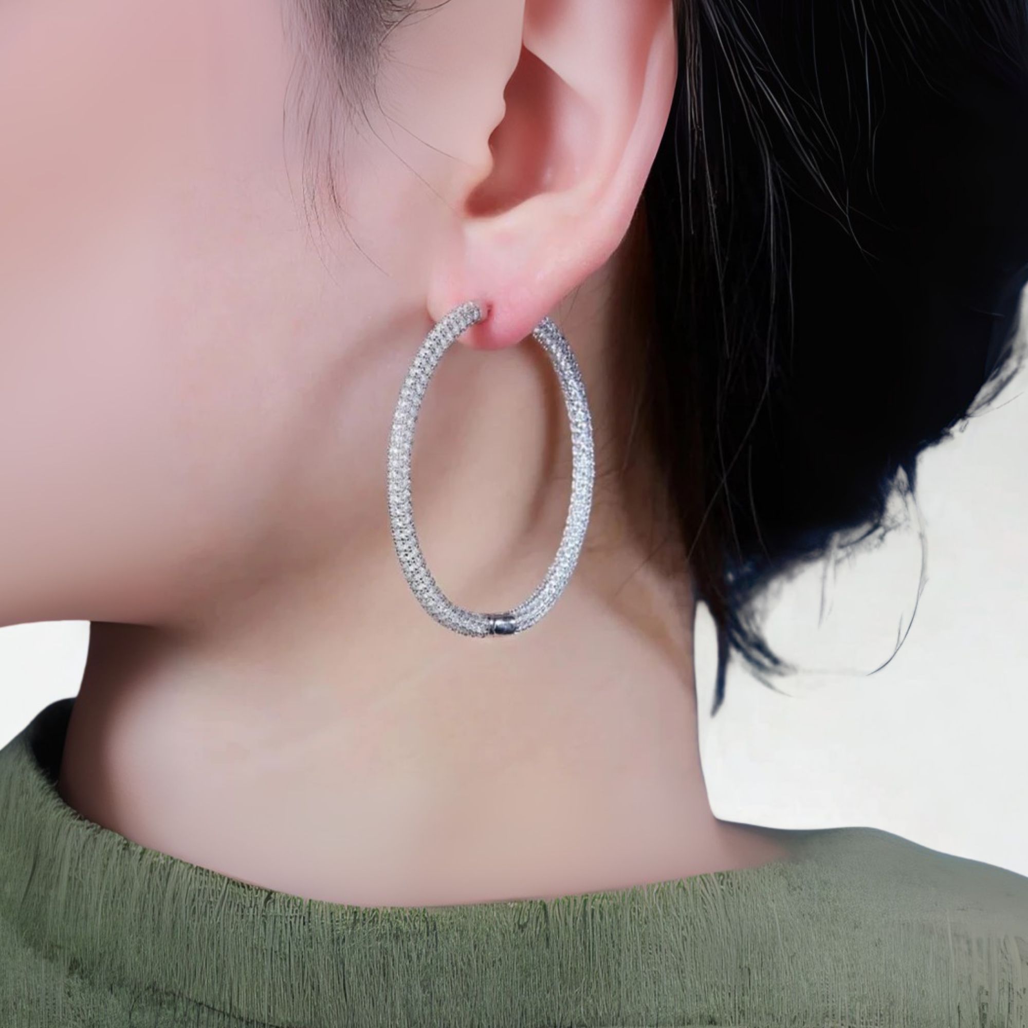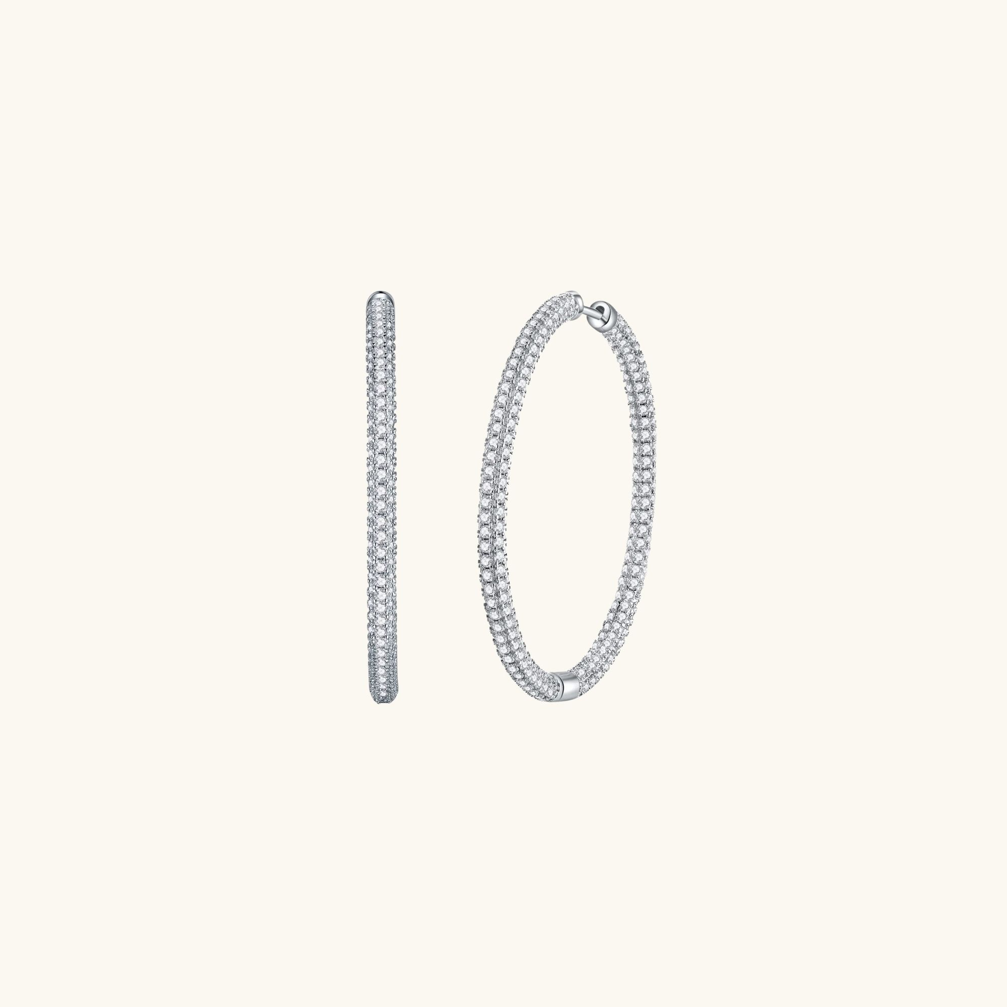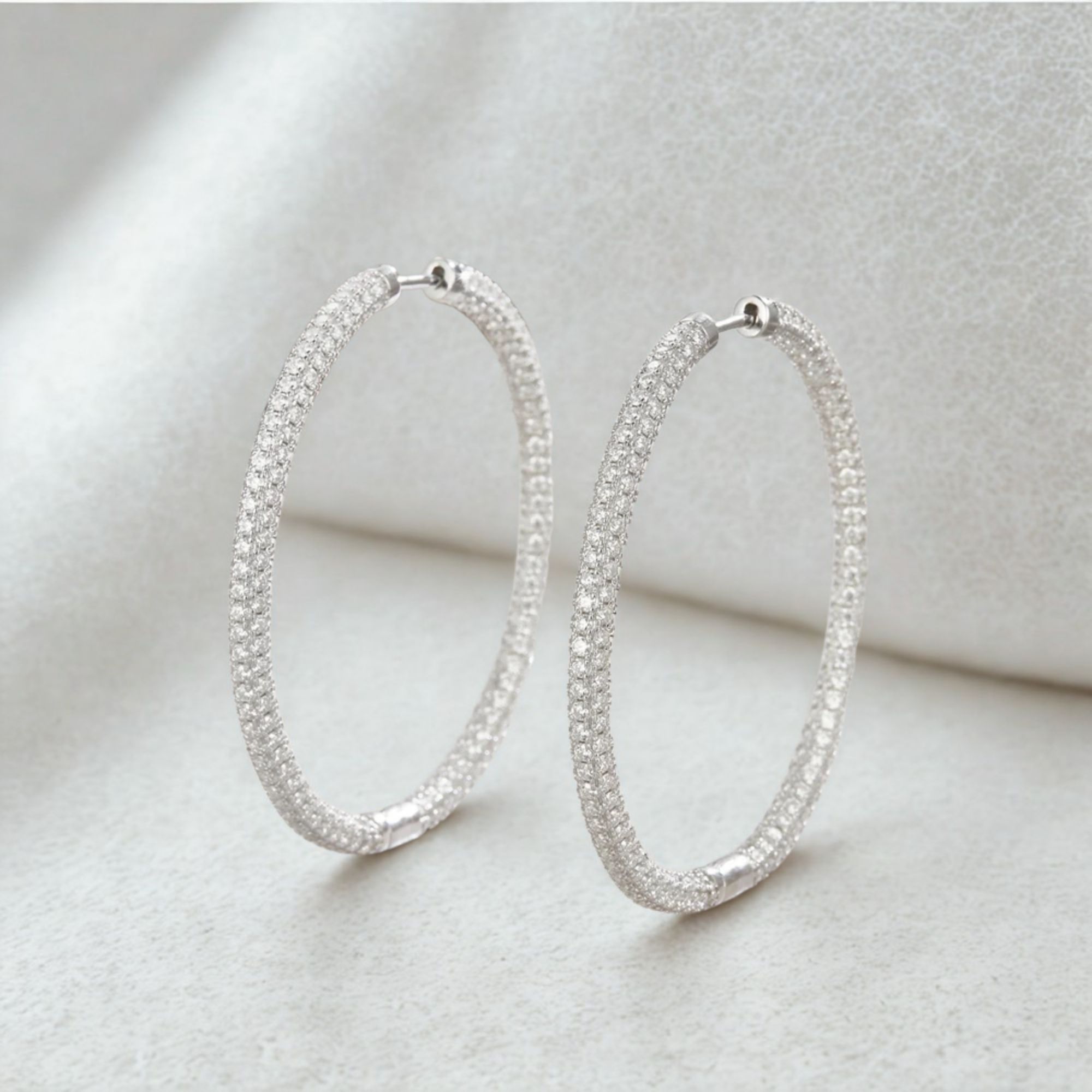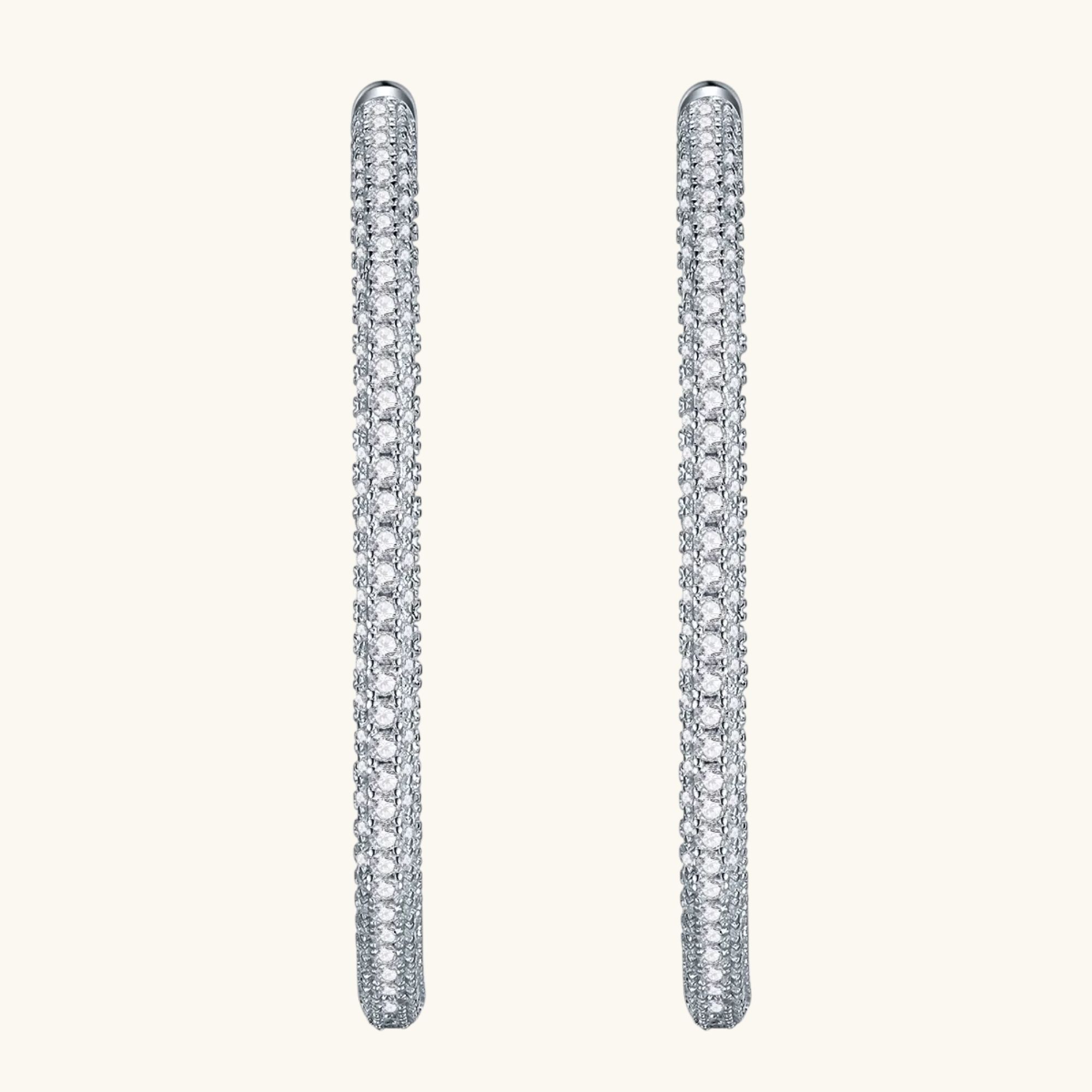 Sparks drift on a river of silver. These hoops, inlaid with moissanite, shimmer with poetic restraint. Each circle a symbol of wholeness, each glint a silent vow—luxury shaped by intention.