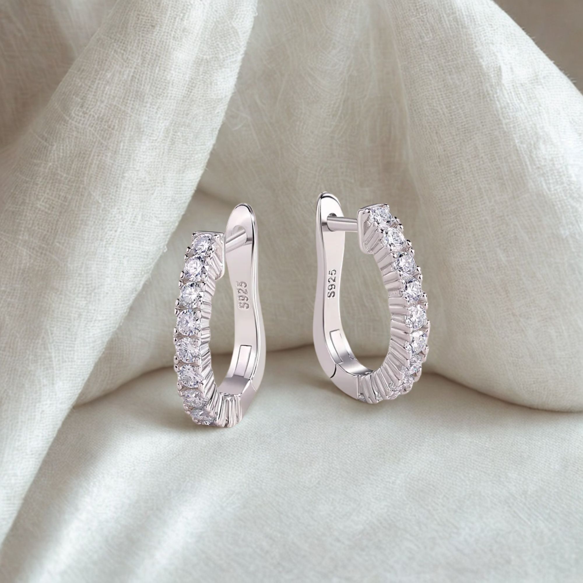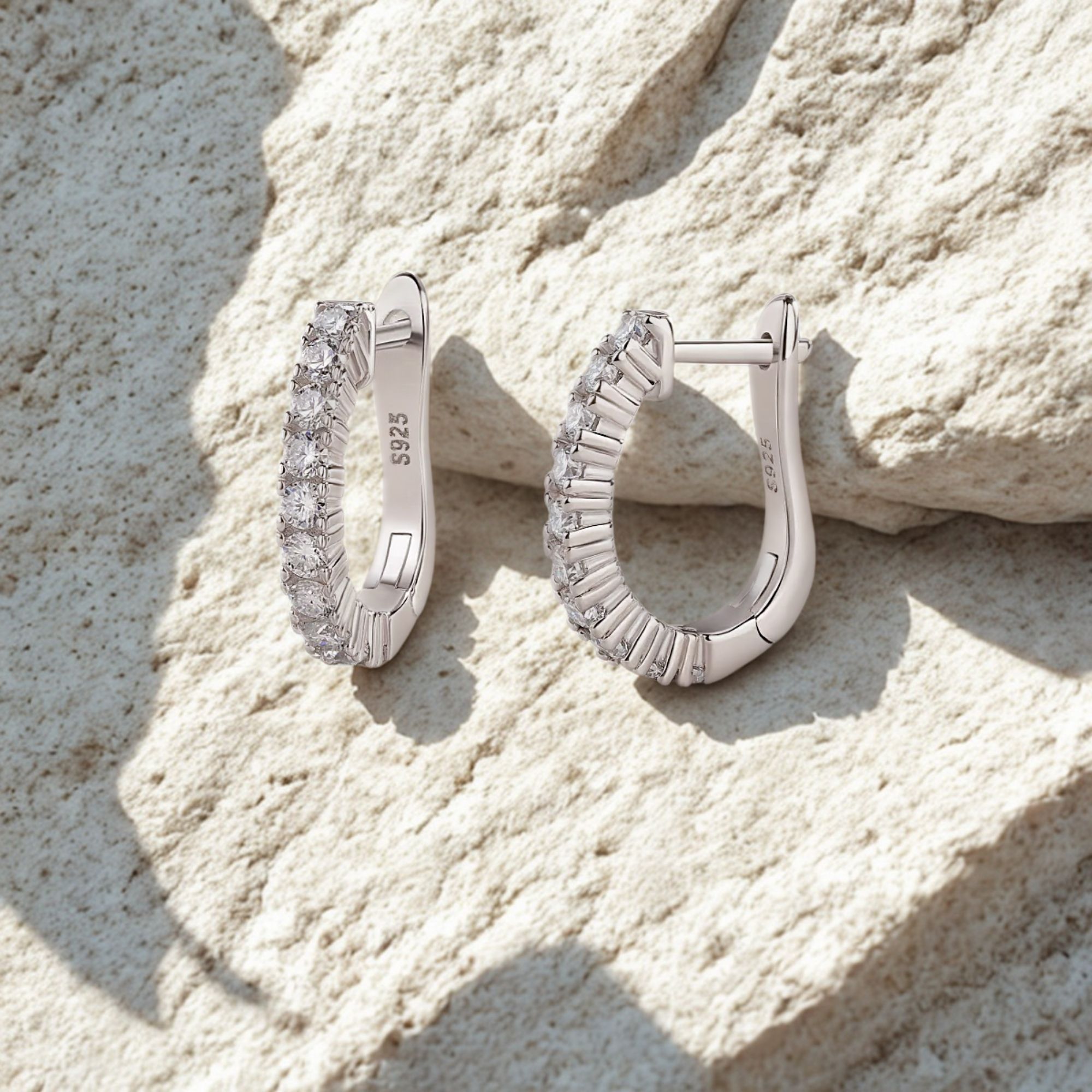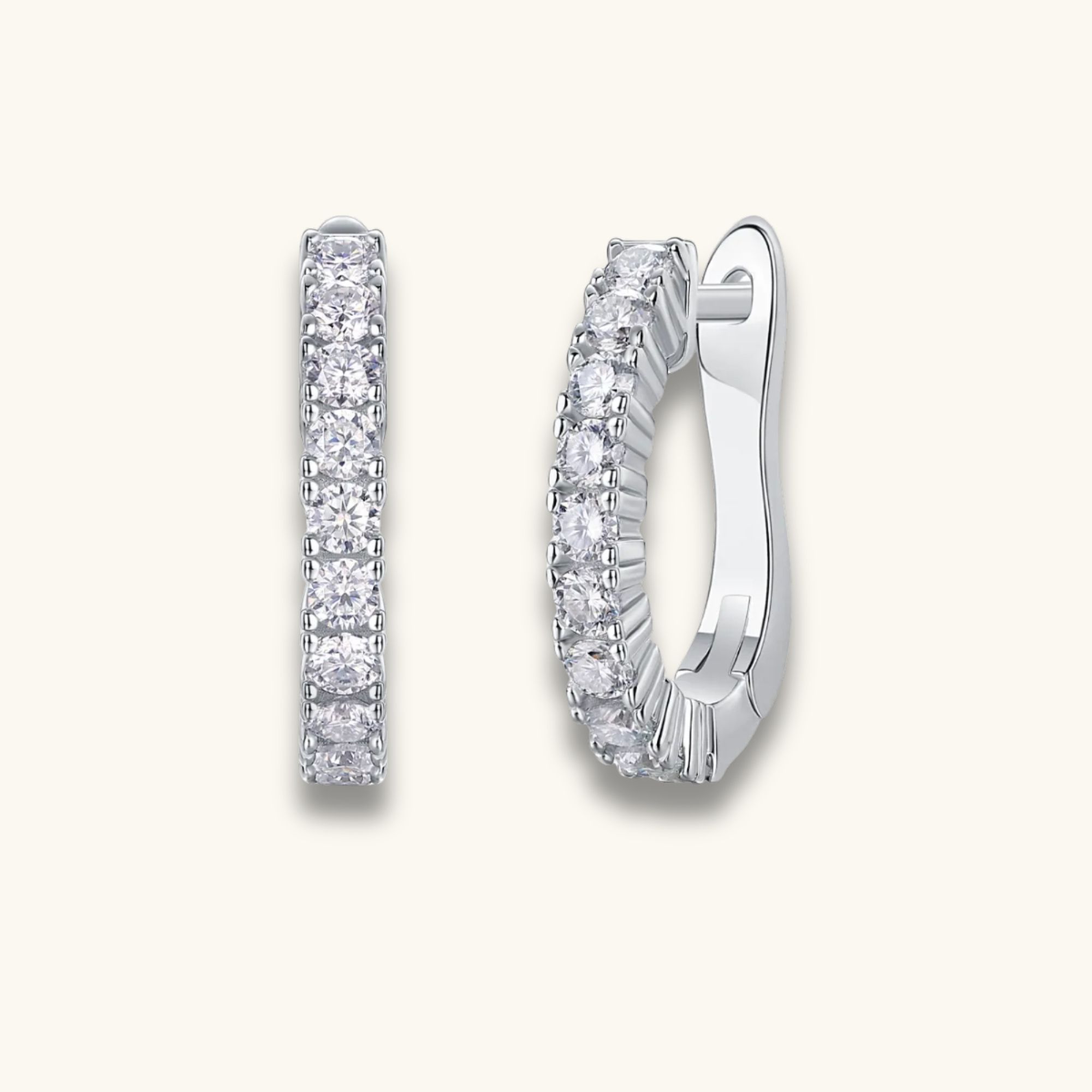 Endless shimmer flows along a silver curve. Moissanite halos glint with every turn, offering comfort and refinement—luxury distilled to a radiant whisper, designed for everyday wonder.
