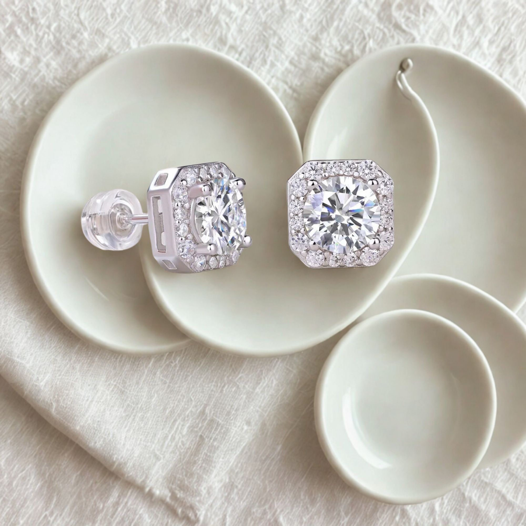 A radiant halo of light—each stud a promise of gentle brilliance. Crafted from luminous silver, their presence lingers: a soft reminder that true luxury is found in the details and in the heart’s quietest moments.