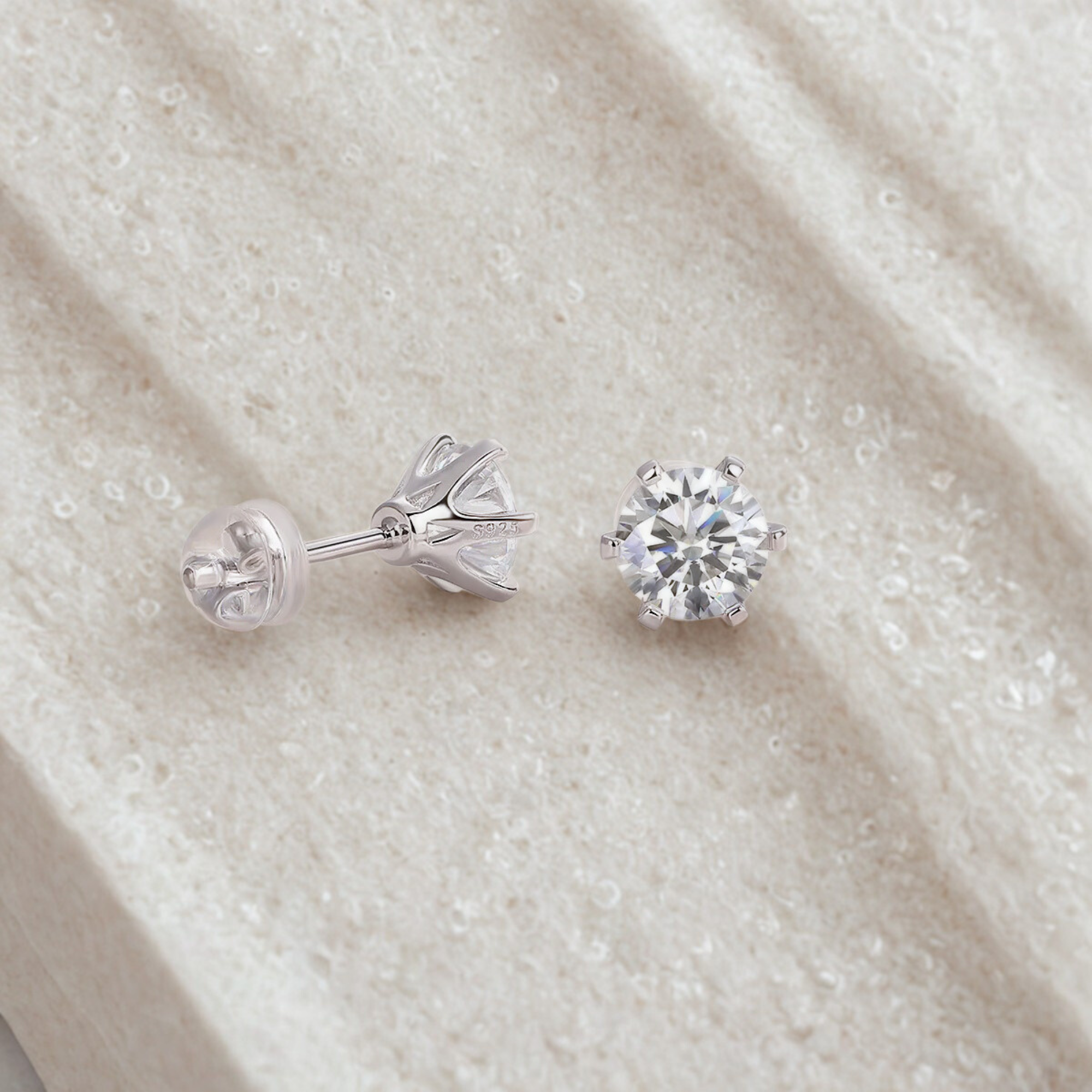 Stillness wraps a silver halo around moissanite’s gentle fire. Each earring is a pause—luxury defined by what it leaves unsaid, a soft glow for those who honor quiet moments.