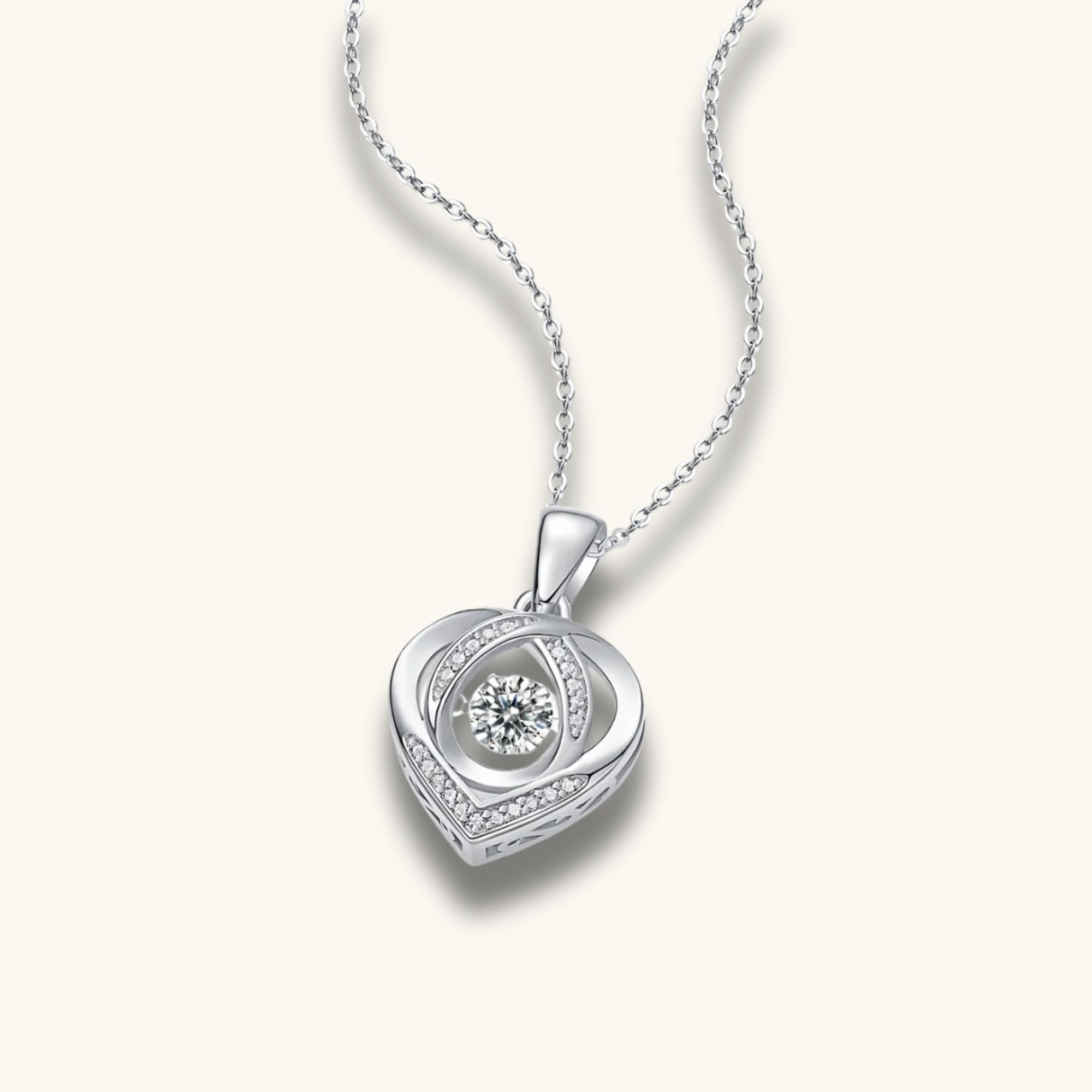 A heart’s desire shimmers in silver, moissanite set with care. Each pendant is an embrace—quietly luminous, echoing the promise of love and the gentle strength of dreams held close.
