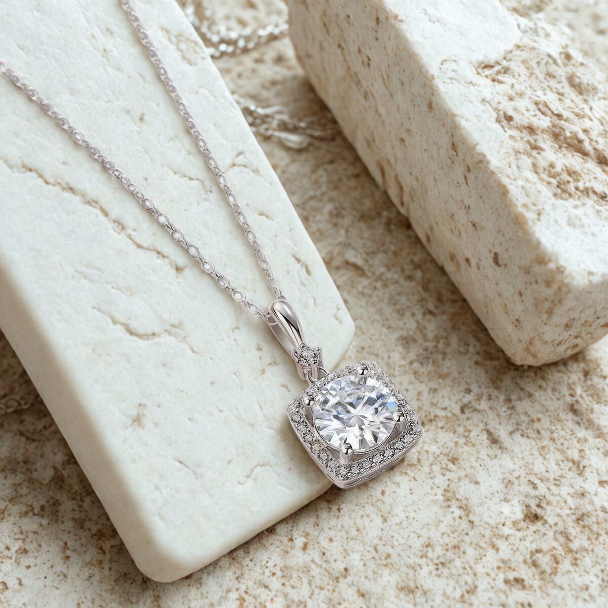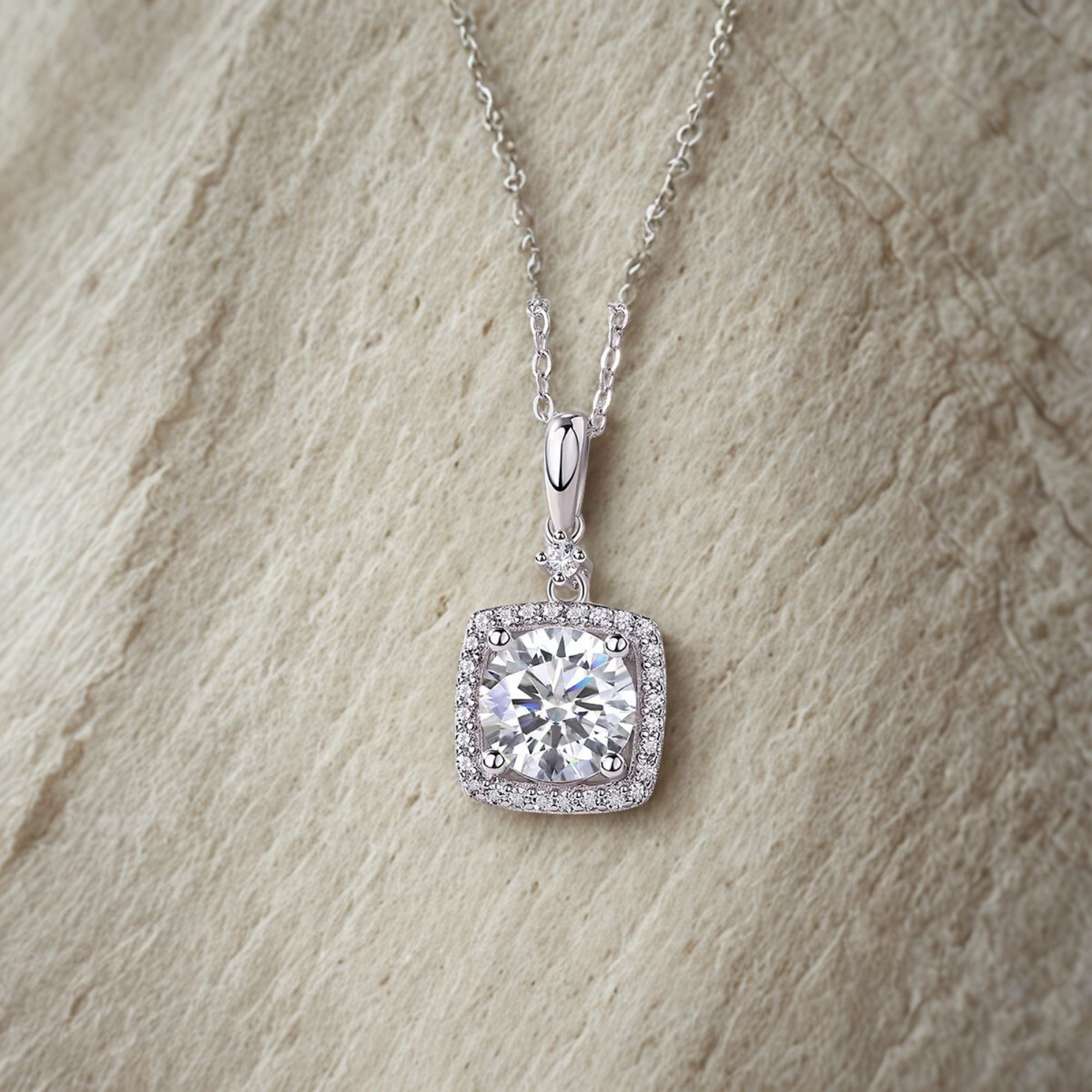 A pendant that feels timeless and effortless. Soft moissanite light glows against silver, making it a natural choice for both everyday wear and special evenings.
