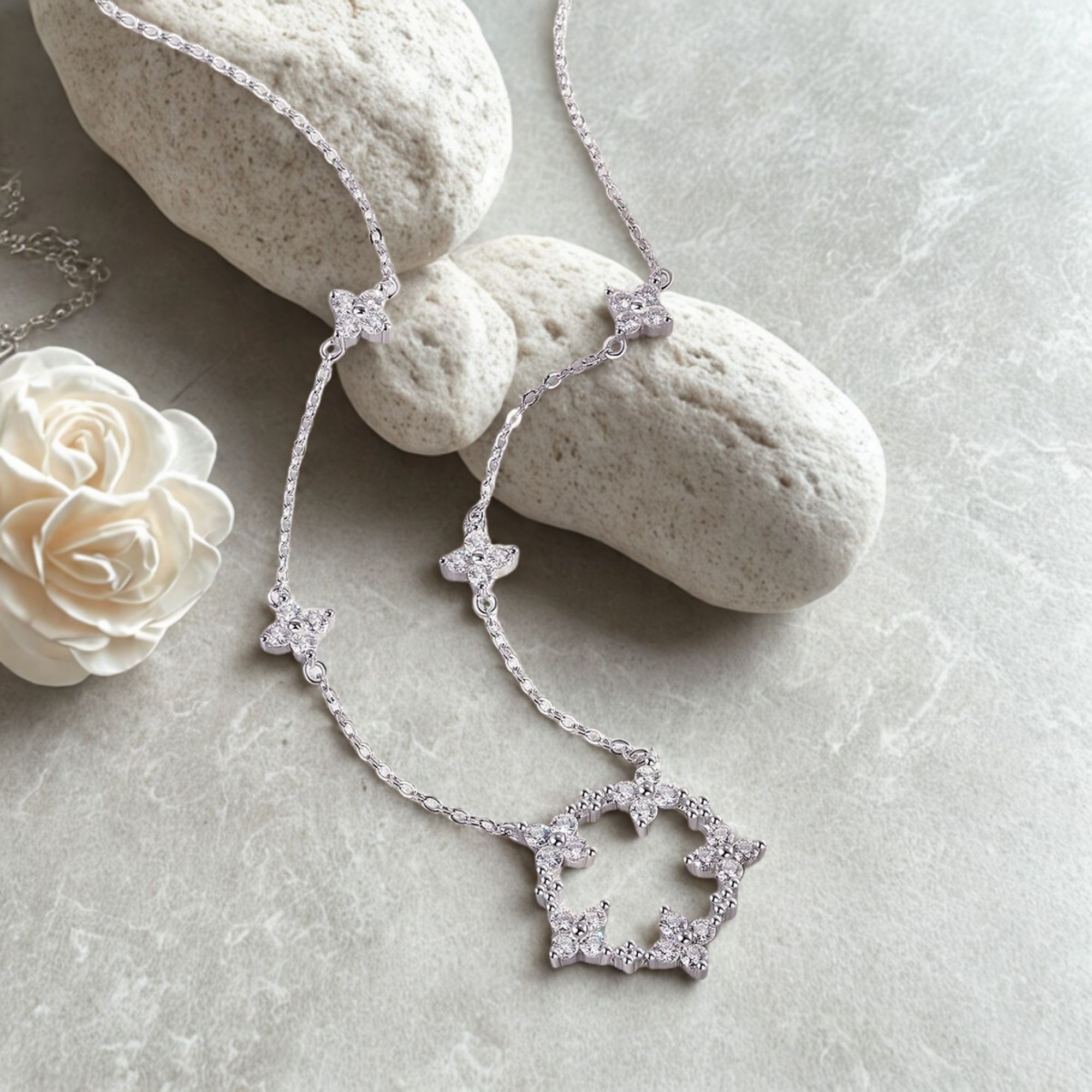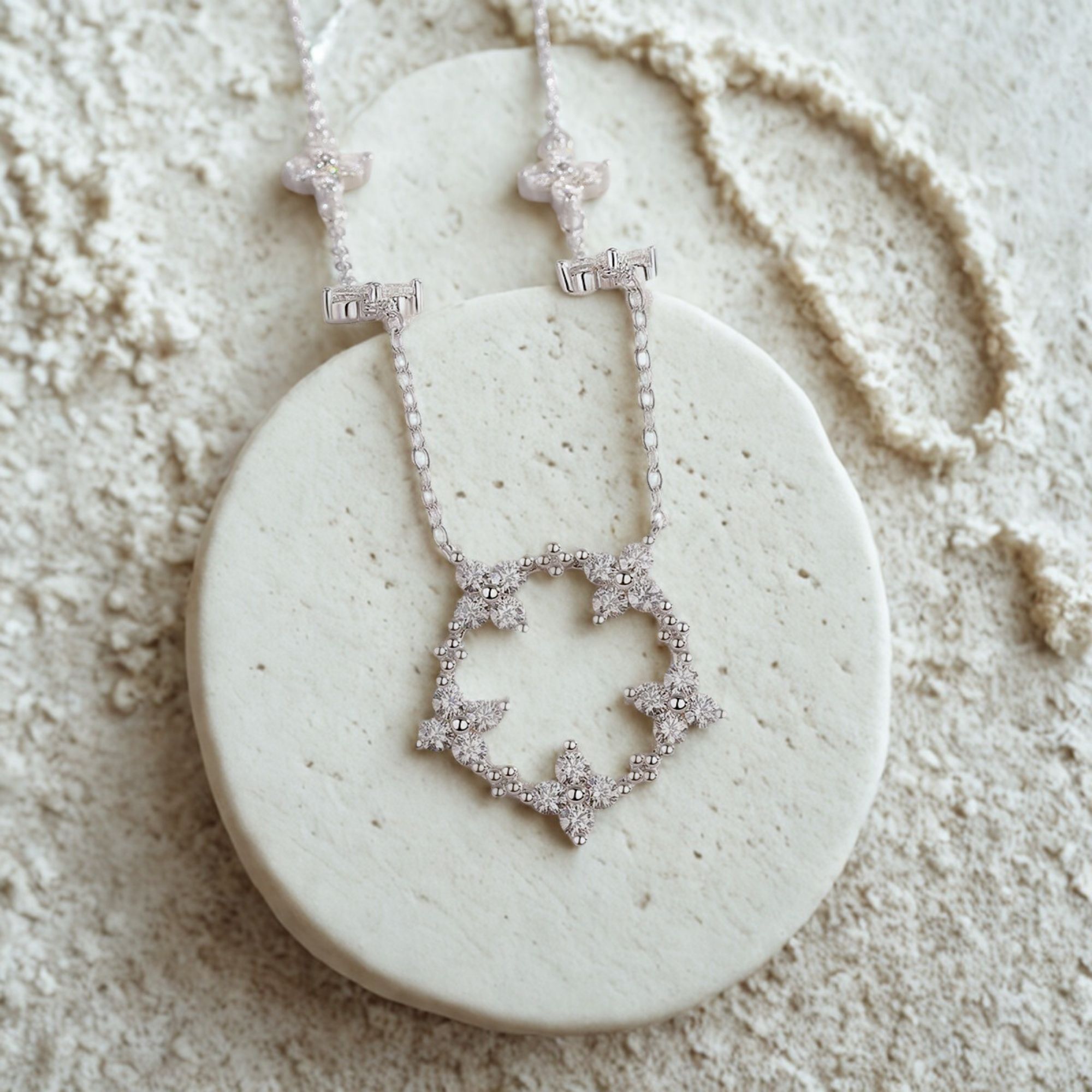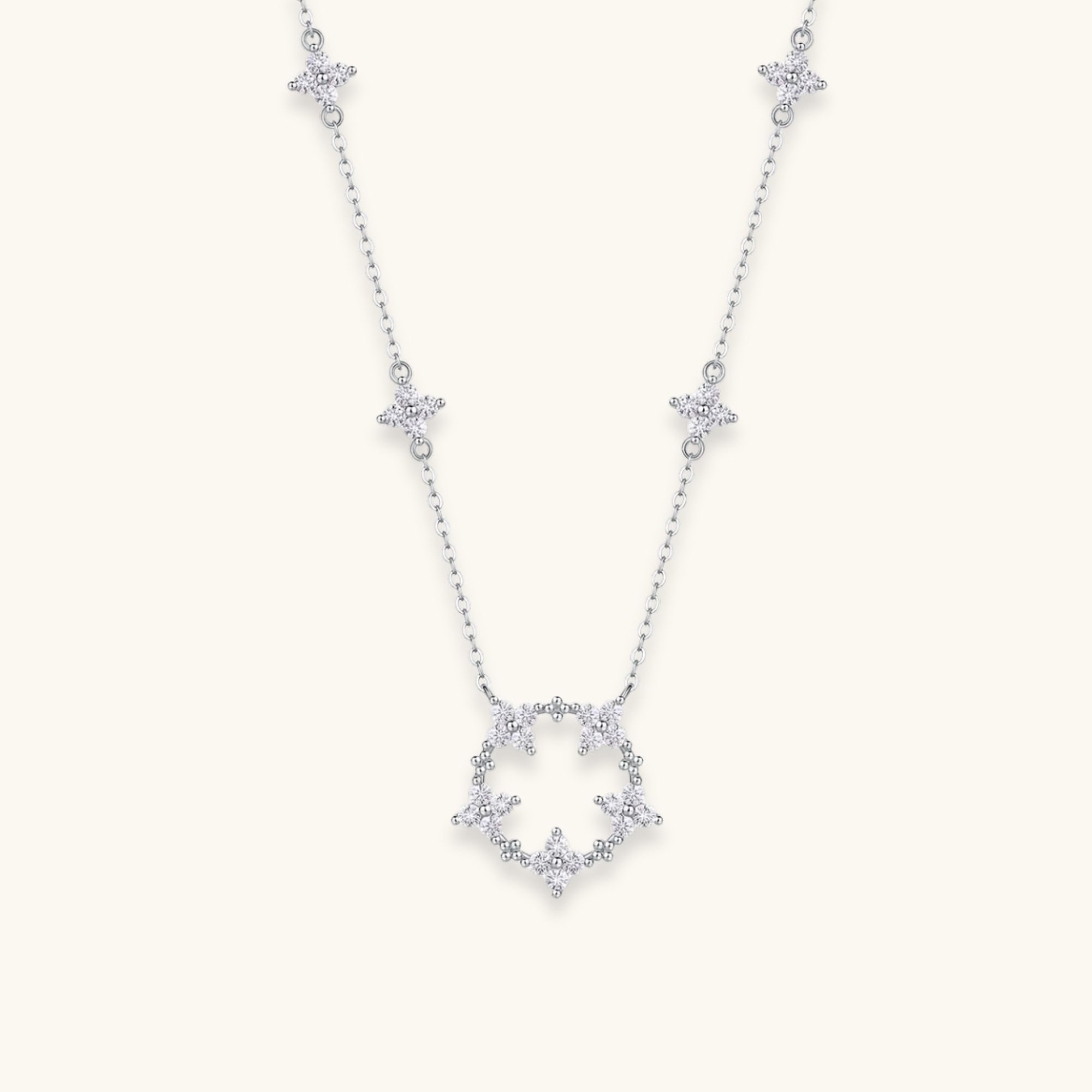 Iris petals bloom in silver, moissanite shining at their heart. Each necklace is a poetic awakening—graceful and pure, it honors renewal and beauty found in the simplest touch of light.