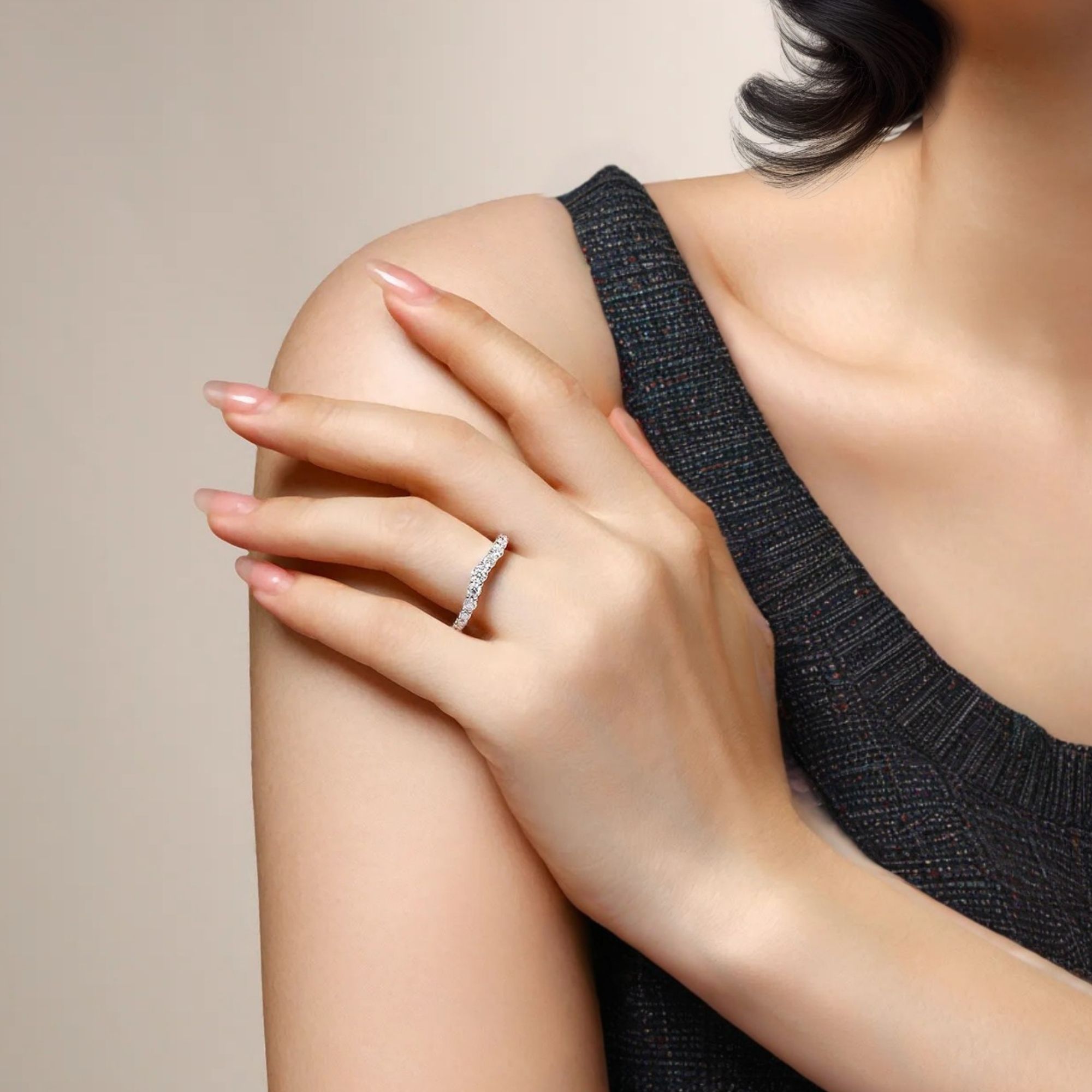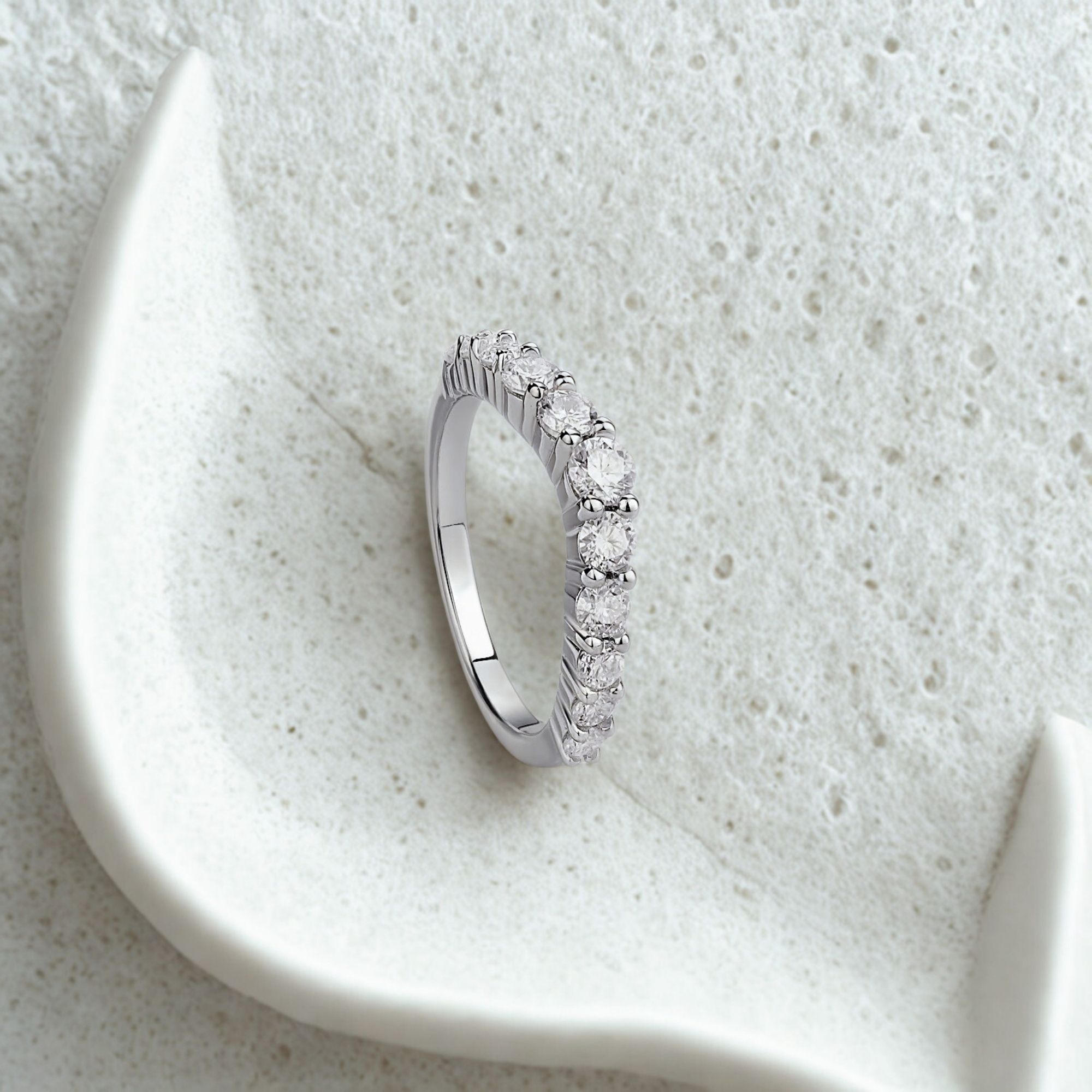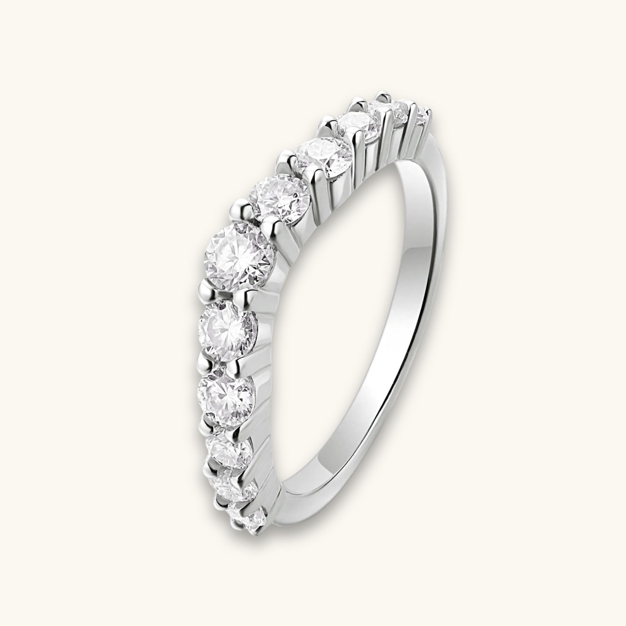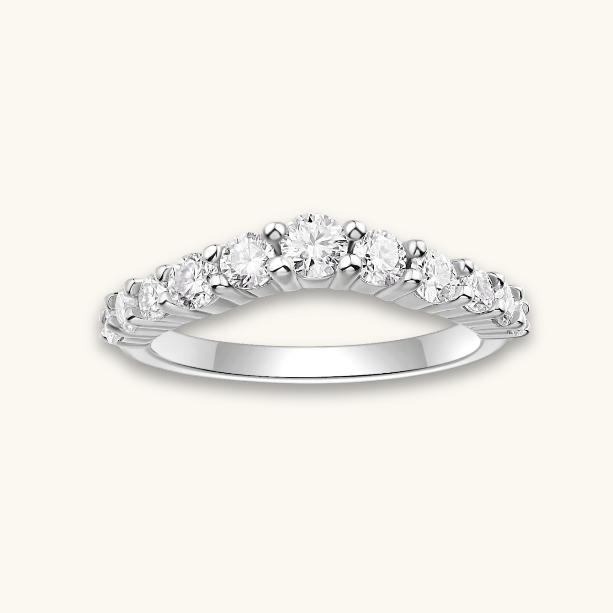 Regal yet minimal, this crown-inspired ring glows with moissanite light. The perfect blend of romance and refinement.