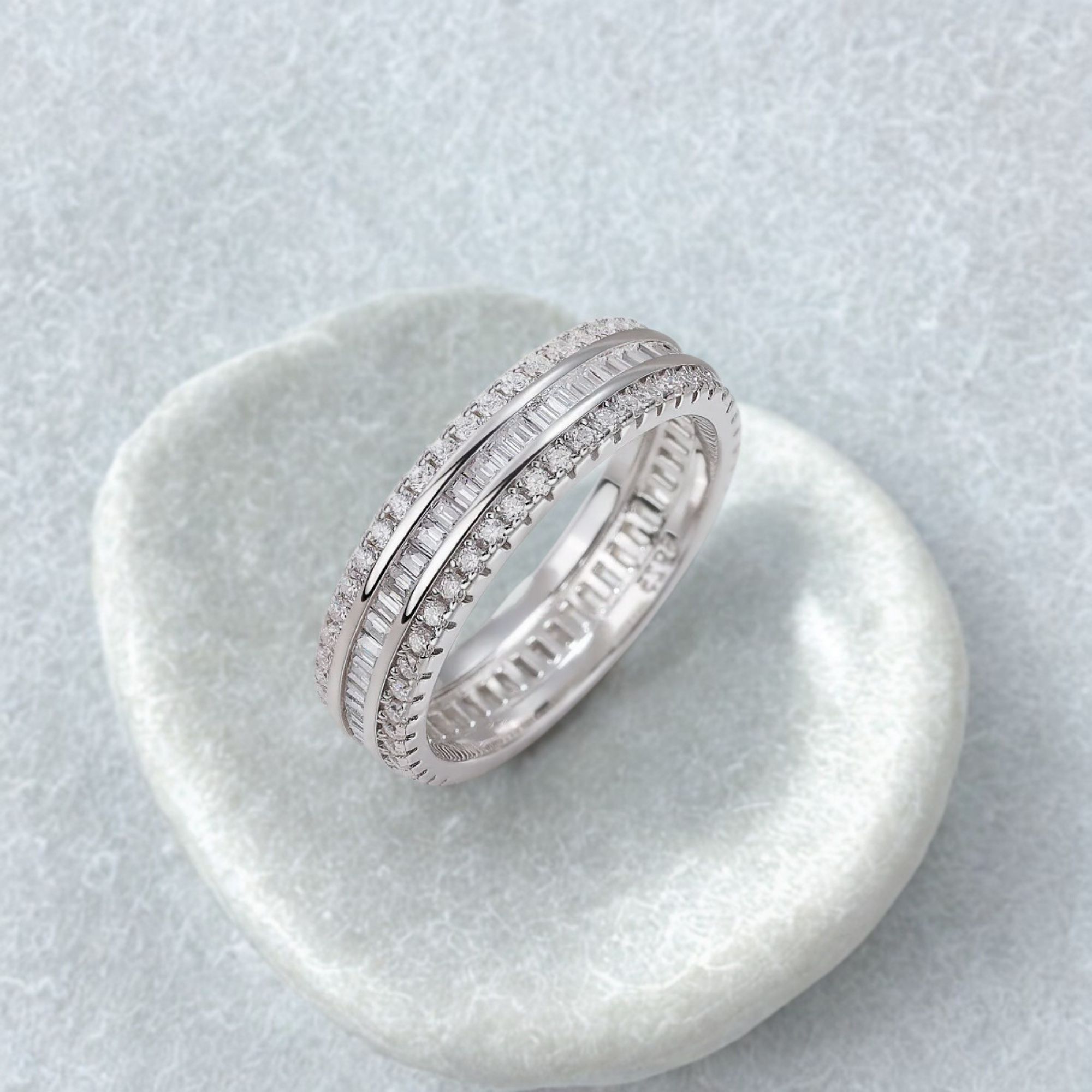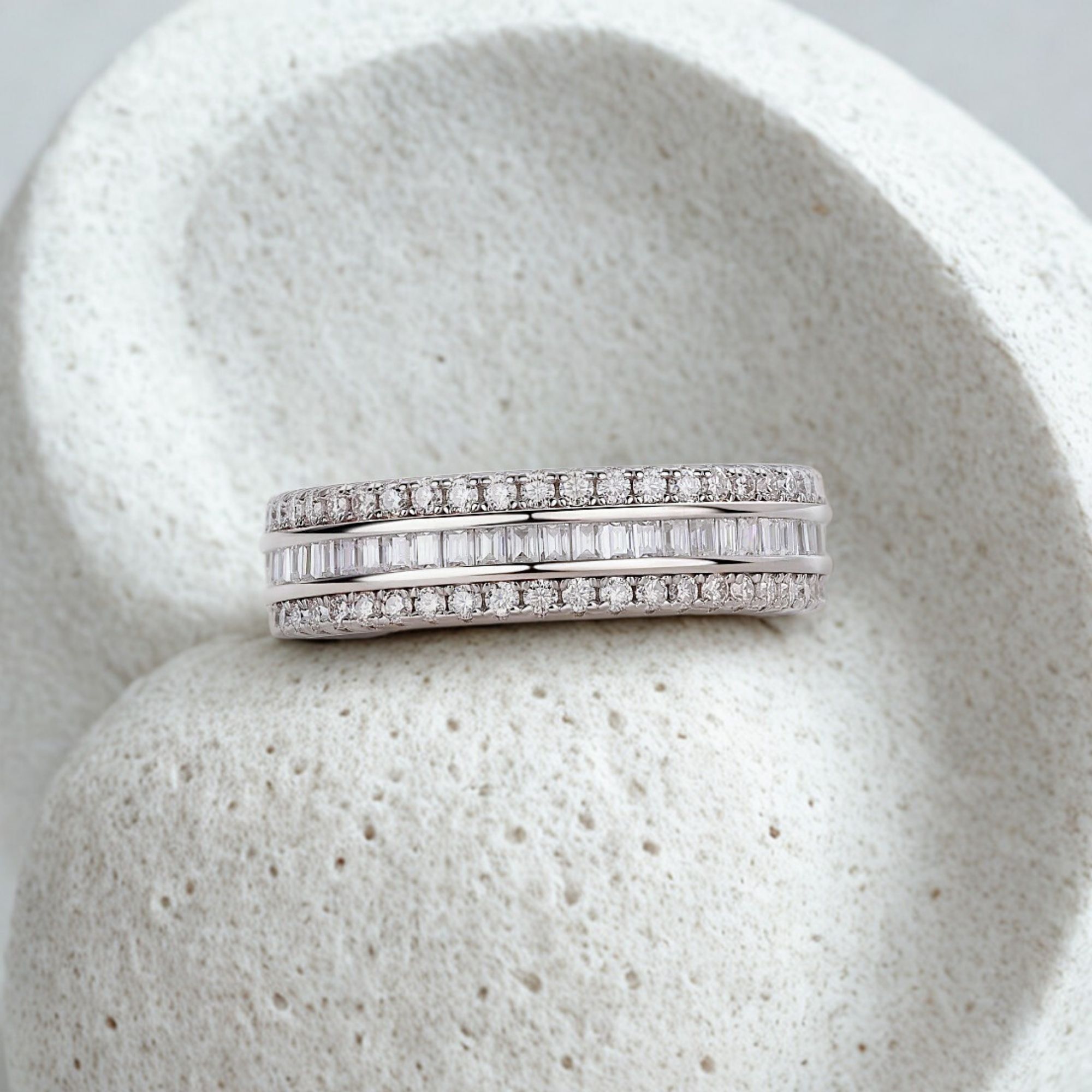Triple the sparkle, triple the allure—this three-row design transforms simplicity into grandeur.