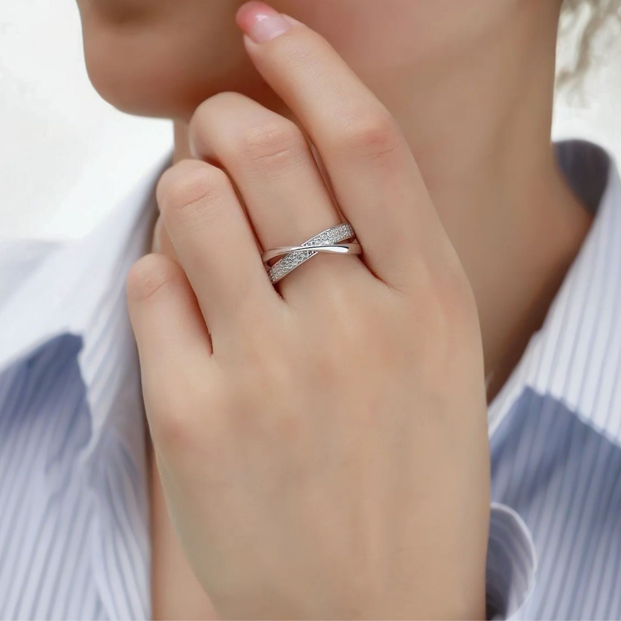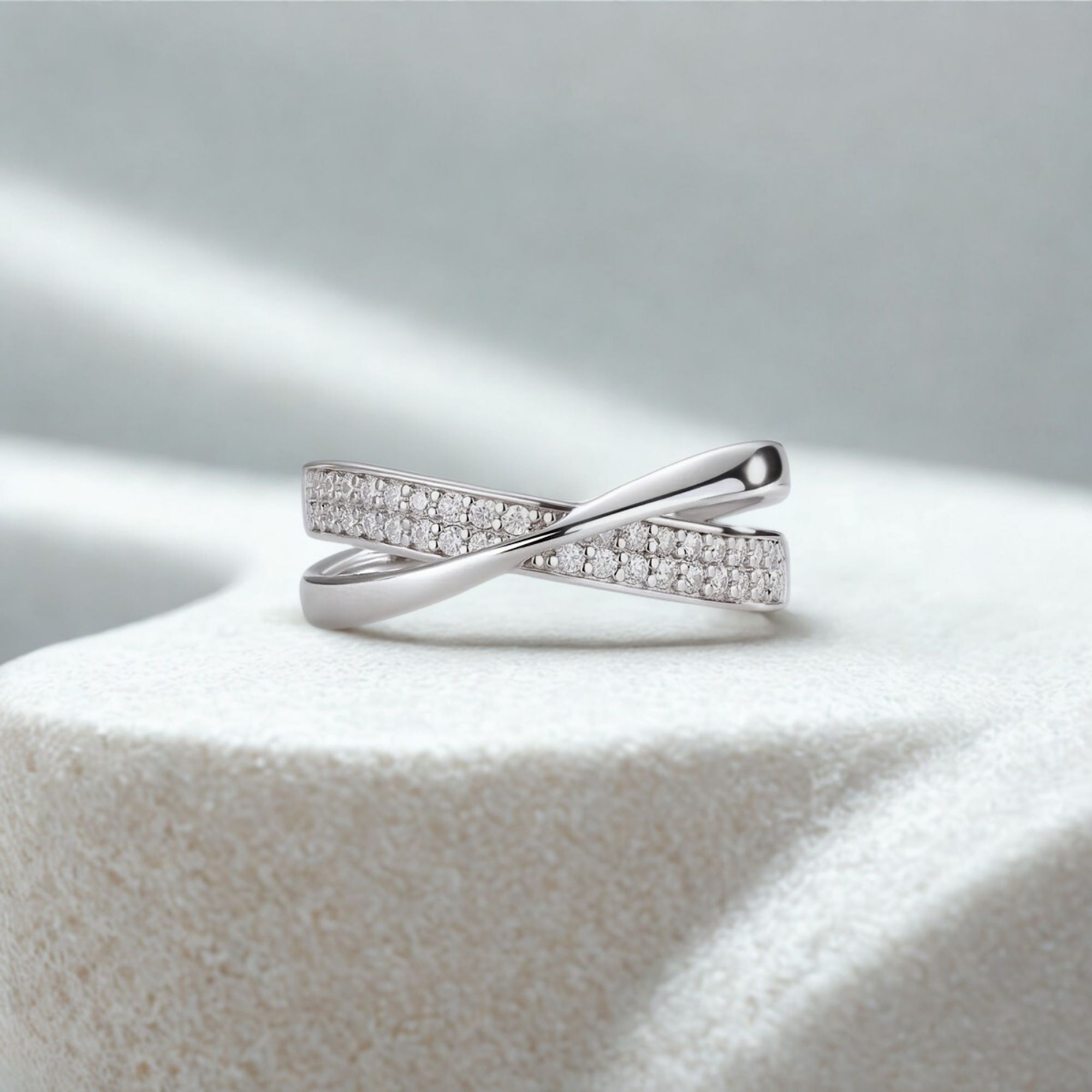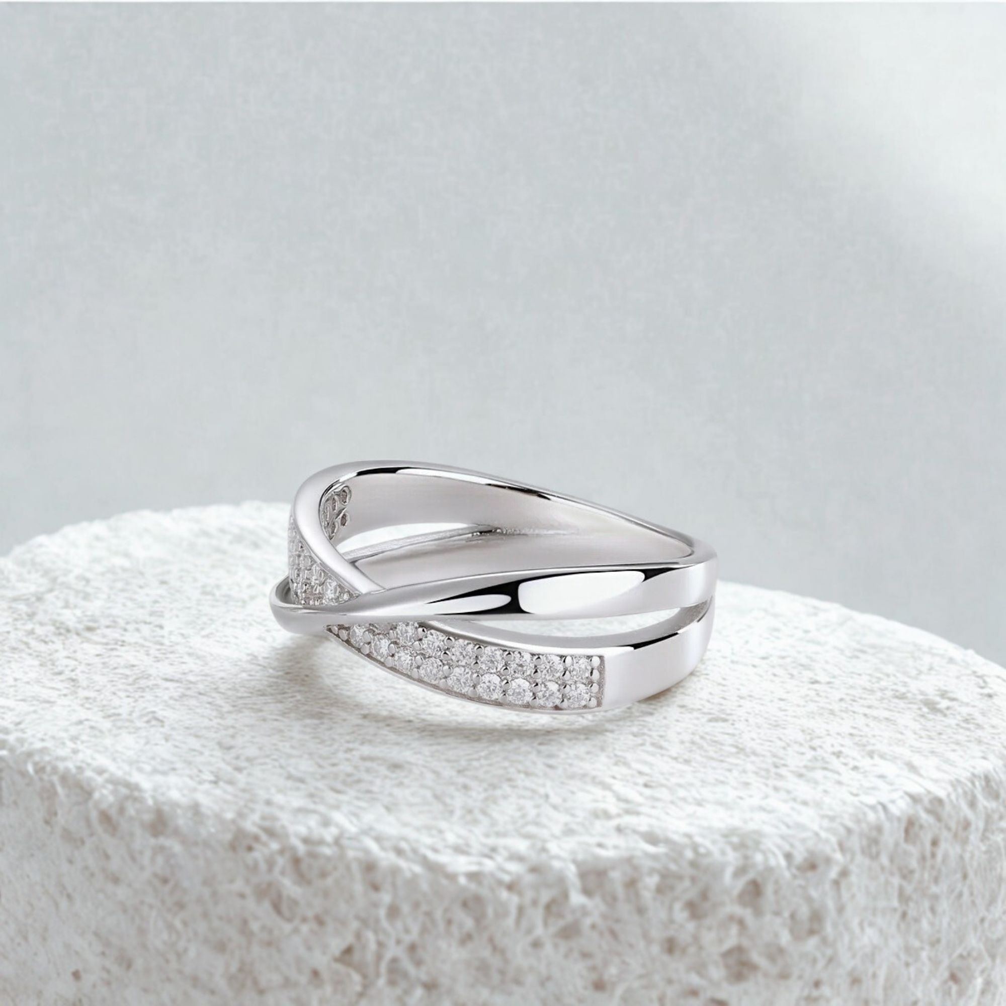 A graceful embrace of moissanite brilliance—this wrap-around ring mirrors love that circles endlessly.